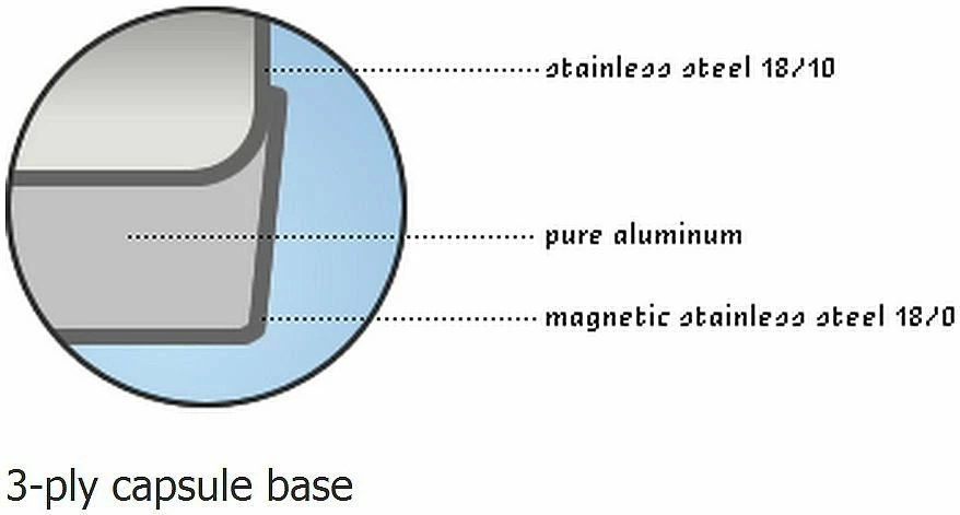 - Encapsulated base of stainless steel with aluminum interior